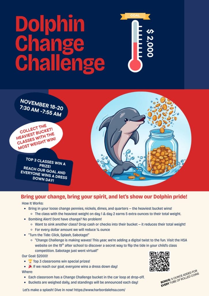 “Change Challenge is making waves! This year, we’re adding a digital twist to the fun. Visit the HSA website on the 19th after school to discover a secret way to flip the tide in your child’s class competition. Sabotage just went virtual!”